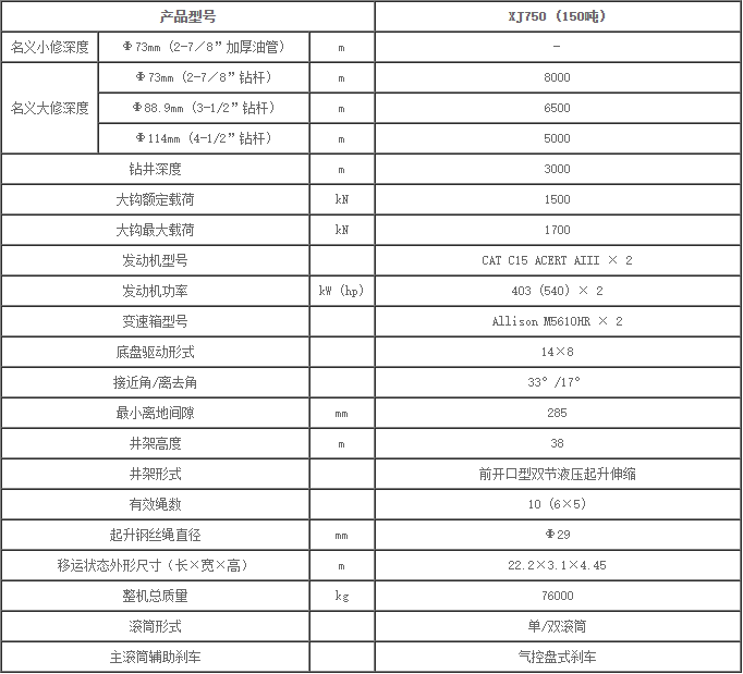 XJ750(150噸)自走雙滾筒修井機(jī)